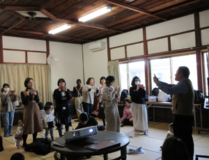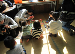 沢山の申し込みがあった"Yagyu photo School"。 柳生写真館のphotographer近間努さんを講師に開催しました。スマホやコンパクトカメラでかわいい我が子をより一層かわいく撮るコツを教えて頂きました。 カメラの構え方、構図やバランスを考えながら撮ってみるなど実際に撮った写真を見比べながら教えて頂きました。ちょっとしたコツを取りいれただけで、全然違った雰囲気の写真になり、お母さんたちからも歓声があがっていました。 いい写真作りをするコツは「一箇所にとどまらない事」。それを頭に置いて子どもの遊んでいる姿を追いかけながら写真を撮りました。大好きなお母さんに声を掛けられながら撮ってもらっている子どもたちはどの子もとてもいい表情をしています。 先生にアドバイスしてもらったり、お母さんからも先生に質問をしたり始終楽しい雰囲気の中、すてきなわが子の瞬間を写真に収めることができました。 |